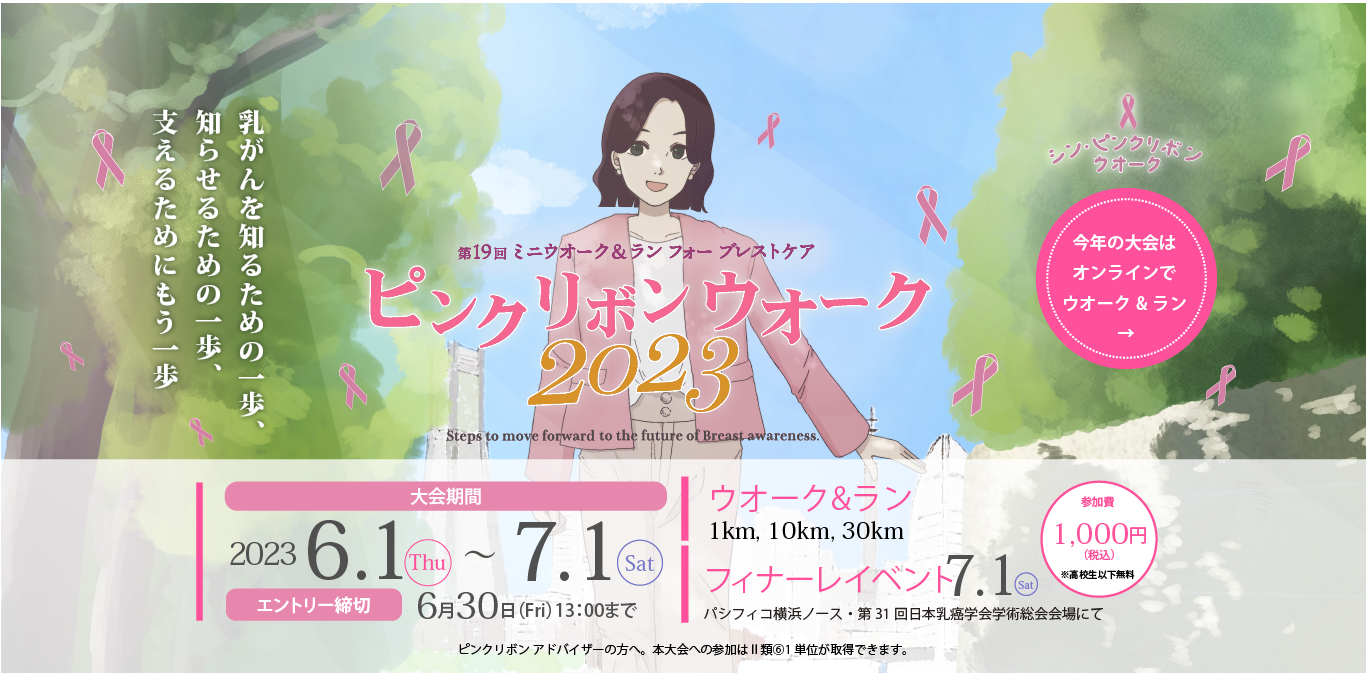 また同6月1日より、認定NPO法人乳房健康研究会様・第31回日本乳癌学会学術総会様・認定NPO法人ハッピーマンマ様の共催によるピンクリボンウォーク2023がスタートしています。